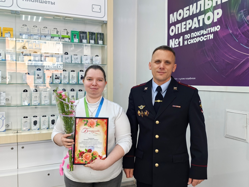 Врио заместителя начальника ОМВД России «Воркутинский» Иван Пимкин лично навестил Светлану Бажину по месту работы и вручил ей благодарственное письмо за неравнодушие и активную гражданскую позицию.